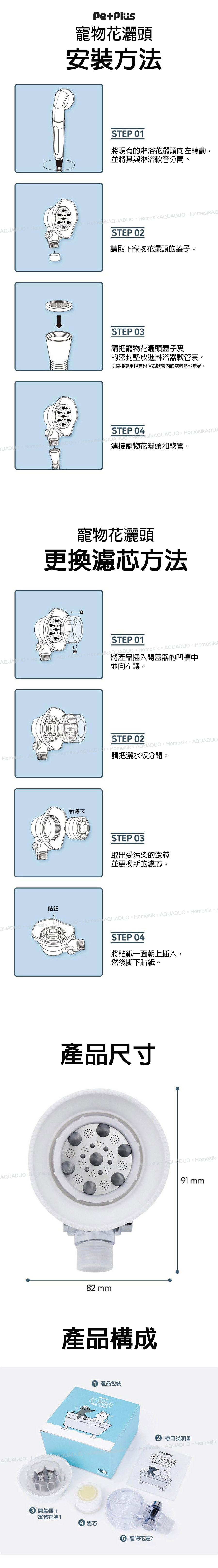 This product includes: shower head*1, vitamin filter*3, Silicon Cover 1, cover opener*1